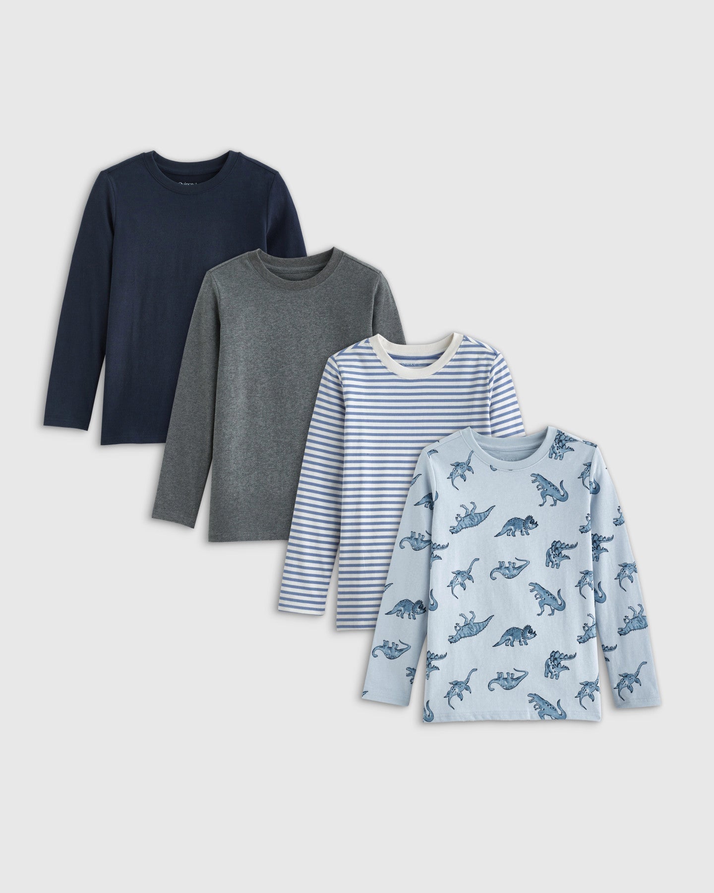 An everyday essential for any child, our 100% Organic Cotton Jersey Long Sleeve Tees are perfect for cooler days or layering under jackets and sweaters. Made from premium organic cotton, these classic long-sleeve tees are soft and comfortable, plus the cool colors and unique prints give them a fun way to express their personal style. Available in a convenient 4-pack, you'll always have a fresh tee on hand.