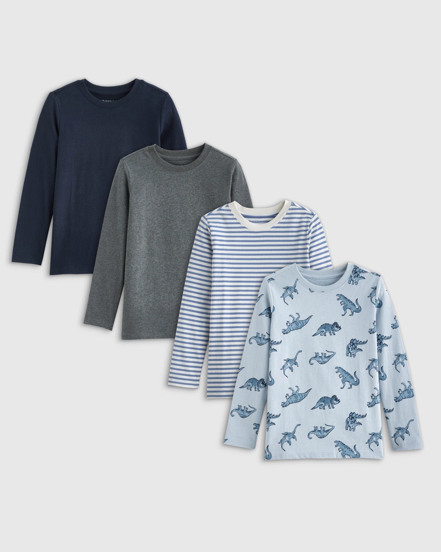 An everyday essential for any child, our 100% Organic Cotton Jersey Long Sleeve Tees are perfect for cooler days or layering under jackets and sweaters. Made from premium organic cotton, these classic long-sleeve tees are soft and comfortable, plus the cool colors and unique prints give them a fun way to express their personal style. Available in a convenient 4-pack, you'll always have a fresh tee on hand.