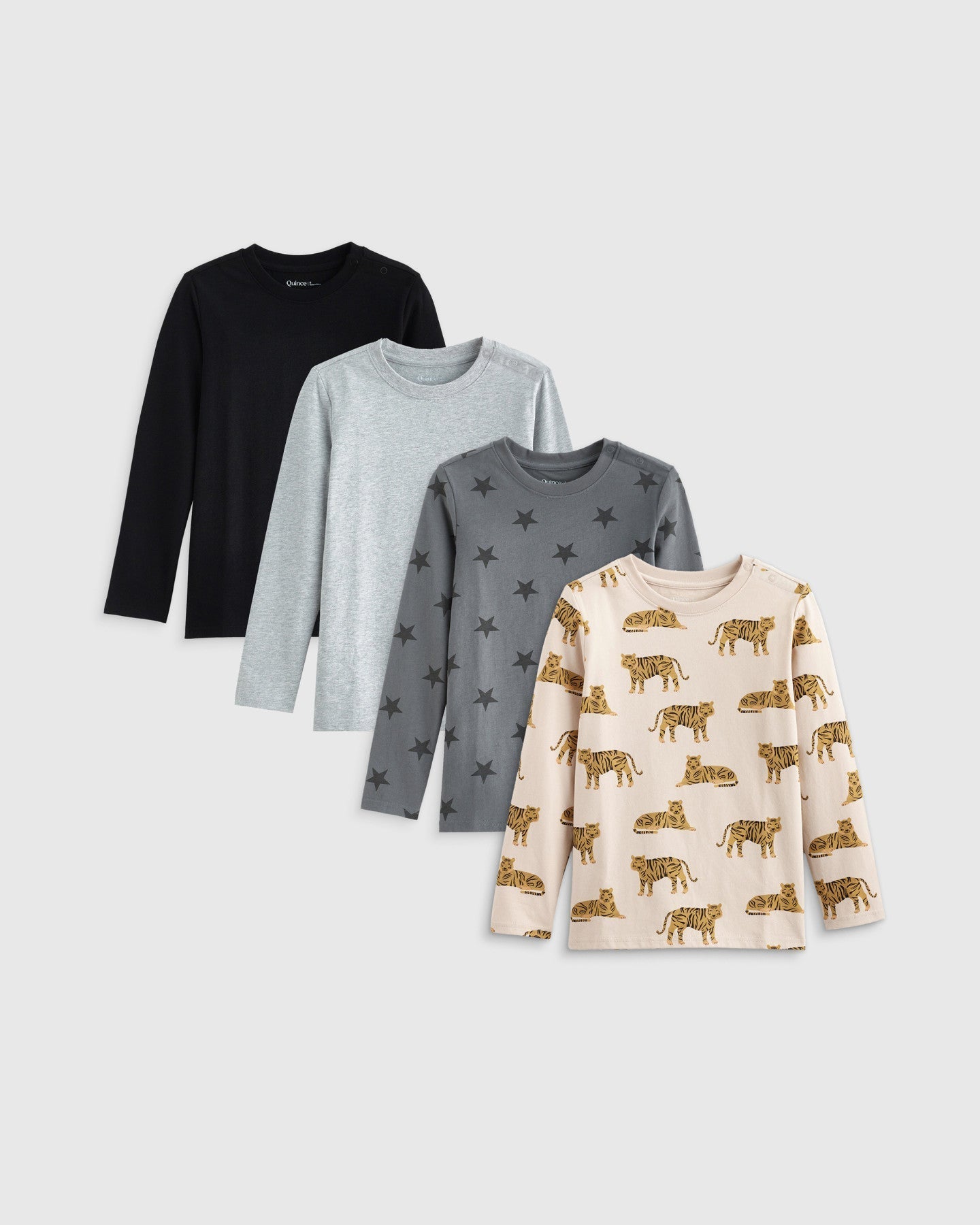 An everyday essential for any child, our 100% Organic Cotton Jersey Long Sleeve Tees are perfect for cooler days or layering under jackets and sweaters. Made from premium organic cotton, these classic long-sleeve tees are soft and comfortable, plus the timeless colors and unique prints give them a fun way to express their personal style. Available in a convenient 4-pack, you'll always have a fresh tee on hand.