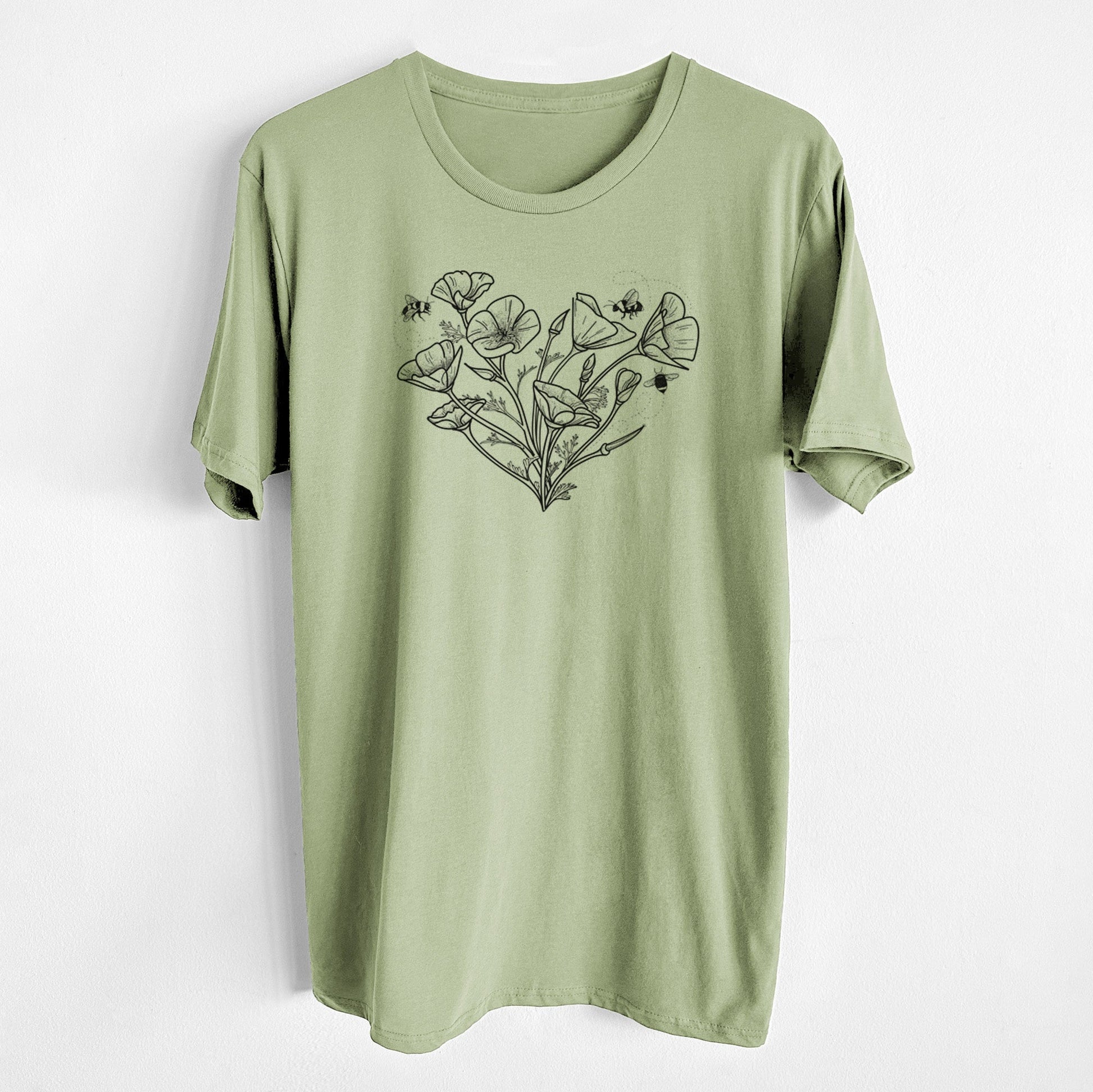 California Poppy Heart - Unisex Crewneck - Made in USA - 100% Organic Cotton