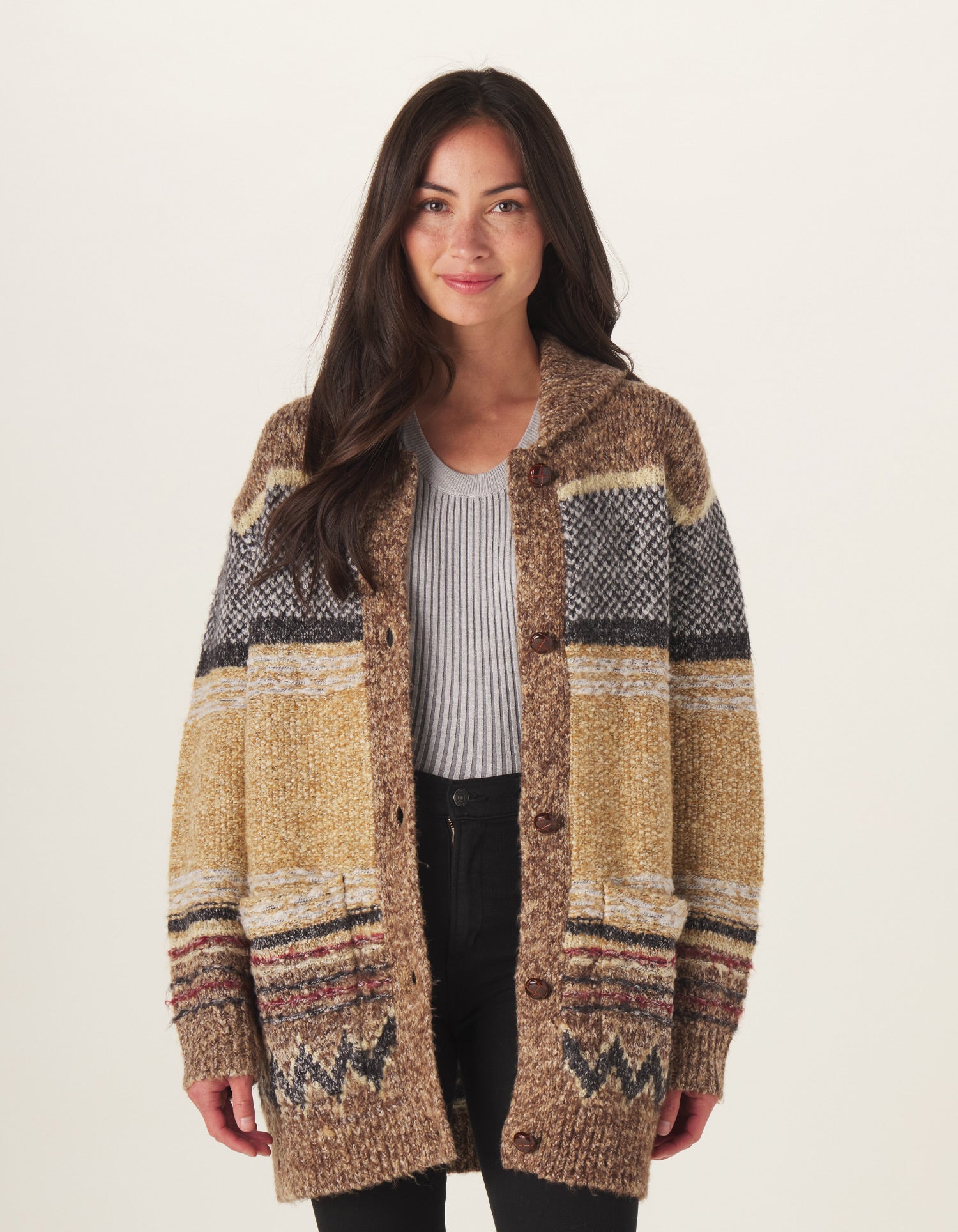 The Carmy Heritage Cardigan is the sweater that feels like it was homemade, with varying knit textures, and a pattern that's straight off the ranch. Soft, fuzzy, and perfect with a pair of jeans and leather boots, this sweater is as at-home by the fire with a book as it is doing yard work on a blustery fall day.