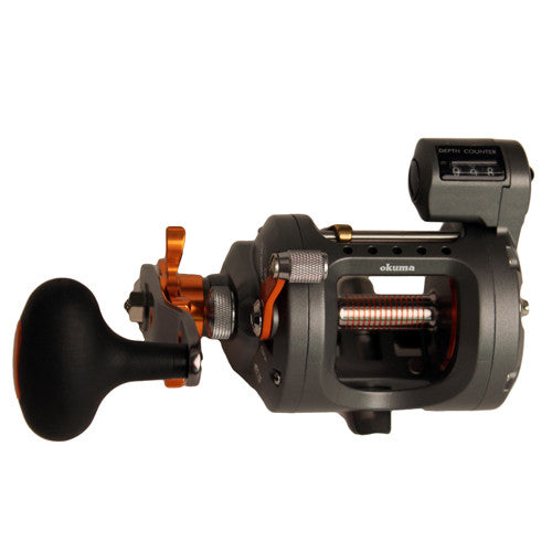 Serving anglers with a premium line counter reel in both right and left hand retrieve, Okuma proudly introduces the Cold Water. The Cold Water family is constructed upon a powerful star drag foundation including heavy-duty machine cut brass gears, dual anti-reverse systems and full Carbonite drag system with up to 20-pounds of maximum drag output. The custom line counter includes new Okuma anti-fogging Clear View Technology, and should the counter be overwhelmed by water, an access port allows the interior to be dried completely. The line counters reset button has also been recessed and placed on the side of the unit to eliminate errant resets. The series includes four sizes in right hand retrieve, three in leaving anglers with a premium line counter reel in both right and left hand retrieve.