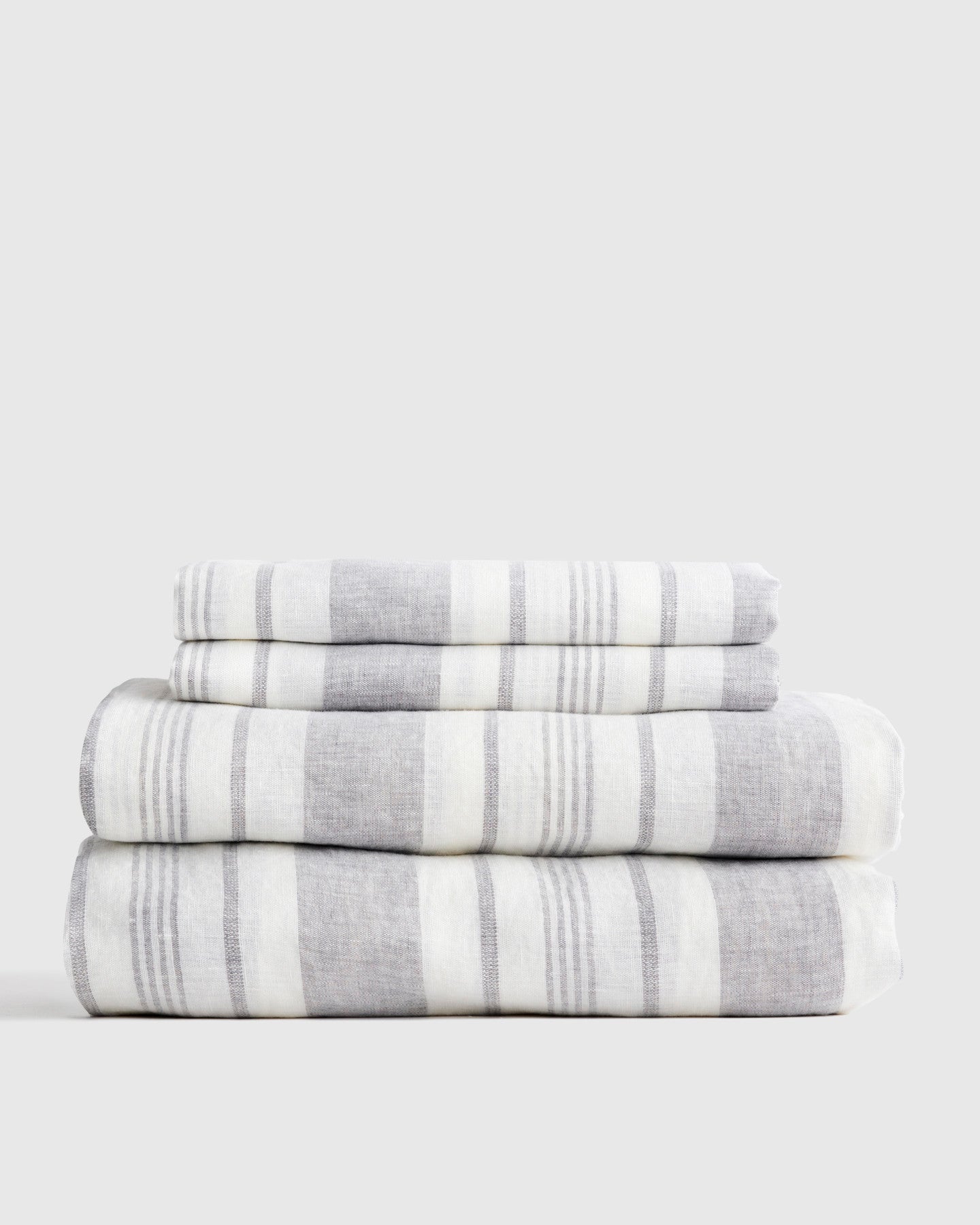 Sometimes a stripe is all you need to make your bedroom pop. This bedding is proof. Woven from certified-toxin-free European flax, our linen sheets offer year-round luxury and feel as good as they look. Plus, they're pre-washed for superior softness and a perfectly lived-in vibe—so you can start cozying up straight away.