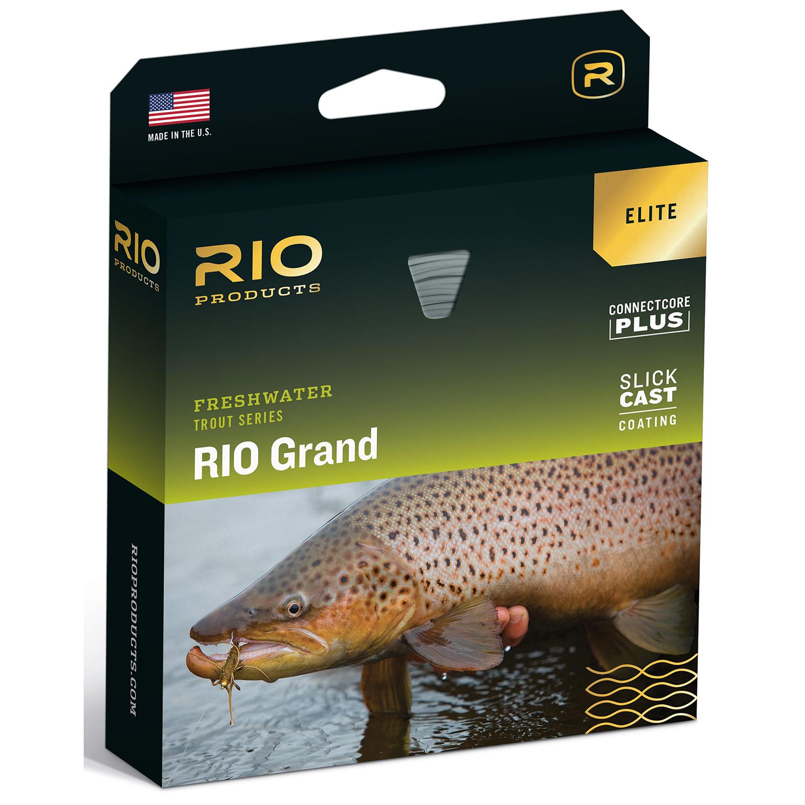 Designed for fast-action fly rods, with low-stretch, ultra-slick performance. A full line size heavier to easily load fast rods Built with RIO's exceptionally slick, durable SlickCast Low-stretch ConnectCore Plus for the best in casting control, performance and smoothness Features RIO's SureFire tricolored measuring system for increased accuracy and distance control Front-loaded, short head The ELITE RIO GRAND is a full line size heavier than the industry standard, and features more weight distributed towards the front of the line to easily load faster action fly rods. The low stretch core gives incredible levels of sensitivity when casting and fishing, and provides enhanced detection of takes, faster hook sets, and far greater control when playing a fish. The RIO Grand is the best choice of line for the modern, fast action fly rod. In addition, this line is built with SlickCast, creating the slickest, most durable coating on the marketproducing the least amount of friction ever measured in a fly line. FEATURES SureFire Easy ID Tag Front Loop Back Loop SKU SIZE TYPE HEAD TOTAL COLOUR 6-19273 WF4 Floating 37ft 90ft Green / Yellow / Gray 6-19274 WF5 Floating 37ft 90ft Green / Yellow / Gray 6-19275 WF6 Floating 39ft 90ft Green / Yellow / Gray 6-19276 WF7 Floating 40ft 90ft Green / Yellow / Gray 6-19277 WF8 Floating 41ft 90ft Green / Yellow / Gray.