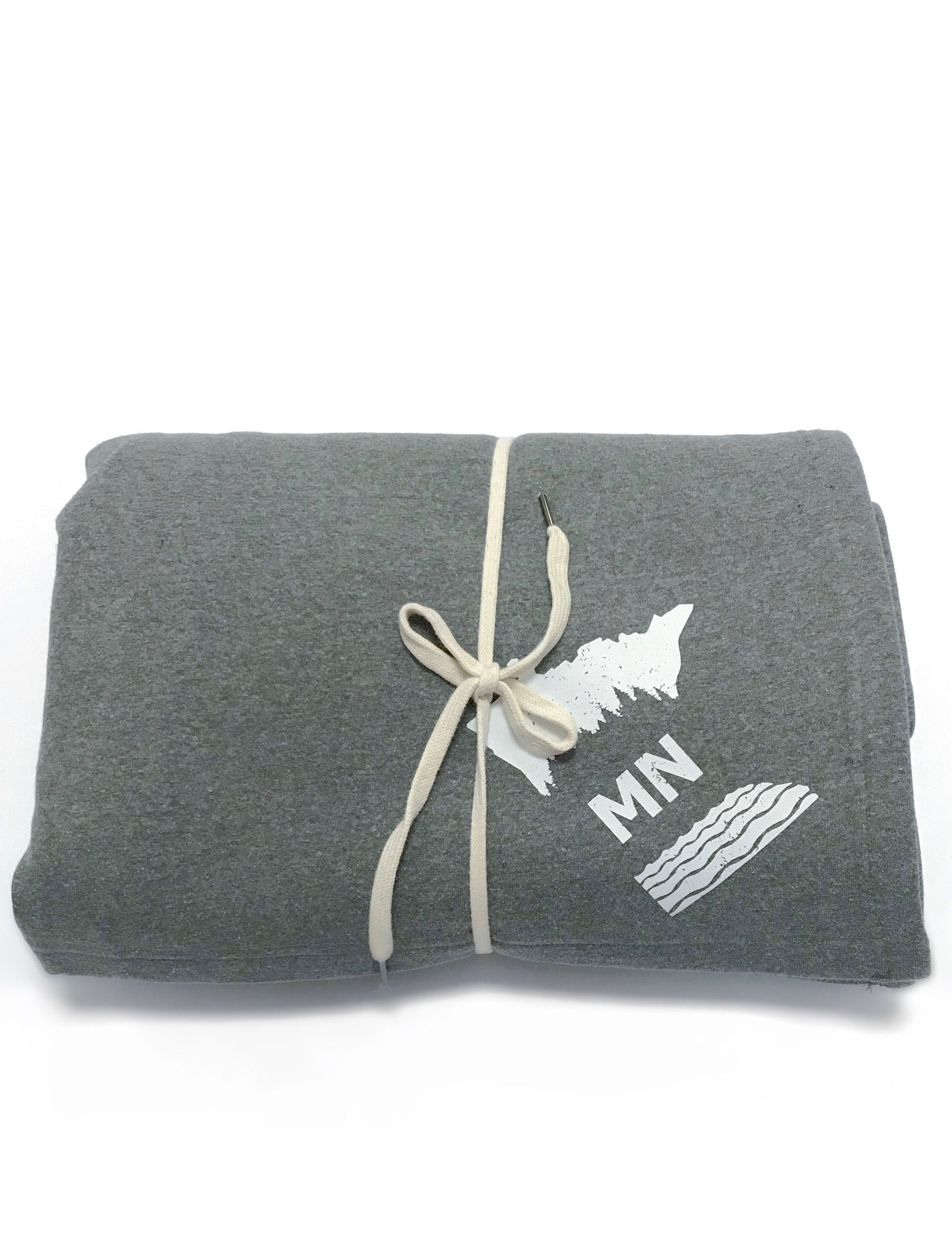 This super soft material is?irresistible! A soft?sweatshirt blend surface with a plush fleece interior, featuring?a sweet nod to Minnesota. This?Gray Northern Sota' Blanket sure to be your must-have for a cozy night in!