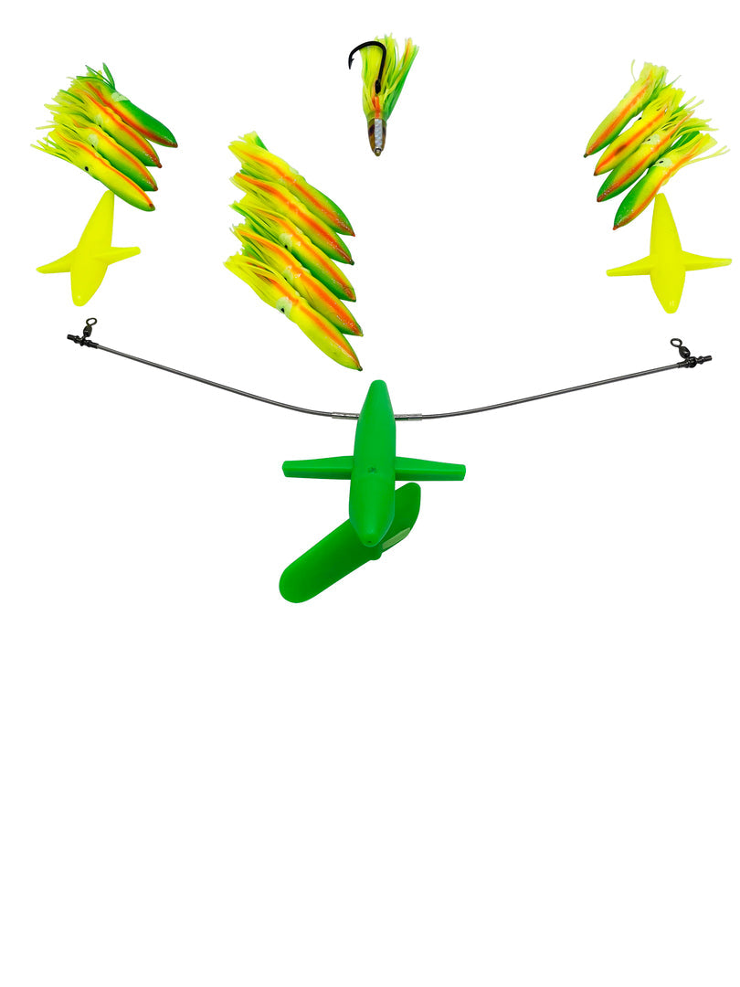 - 19" Spreader Bar with patented Side Tracker Bird and 2 outside stabilizing 5" chatter birds.