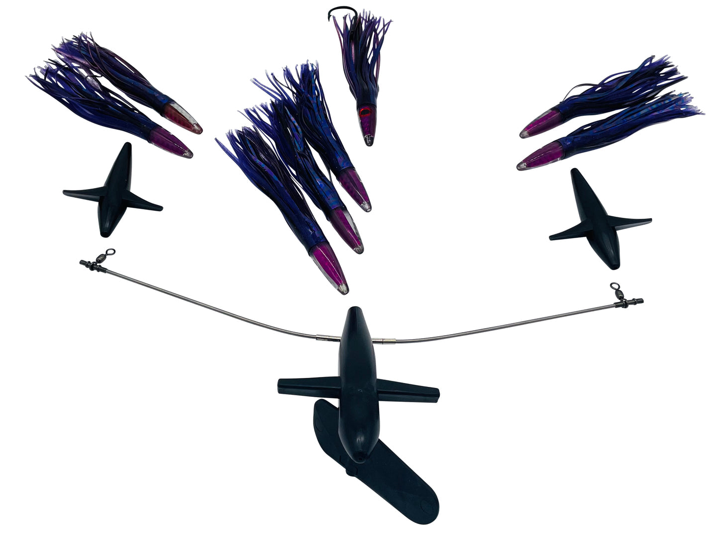 - 19" Spreader Bar with patented Side Tracker Bird and 2 outside stabilizing 5" chatter birds.