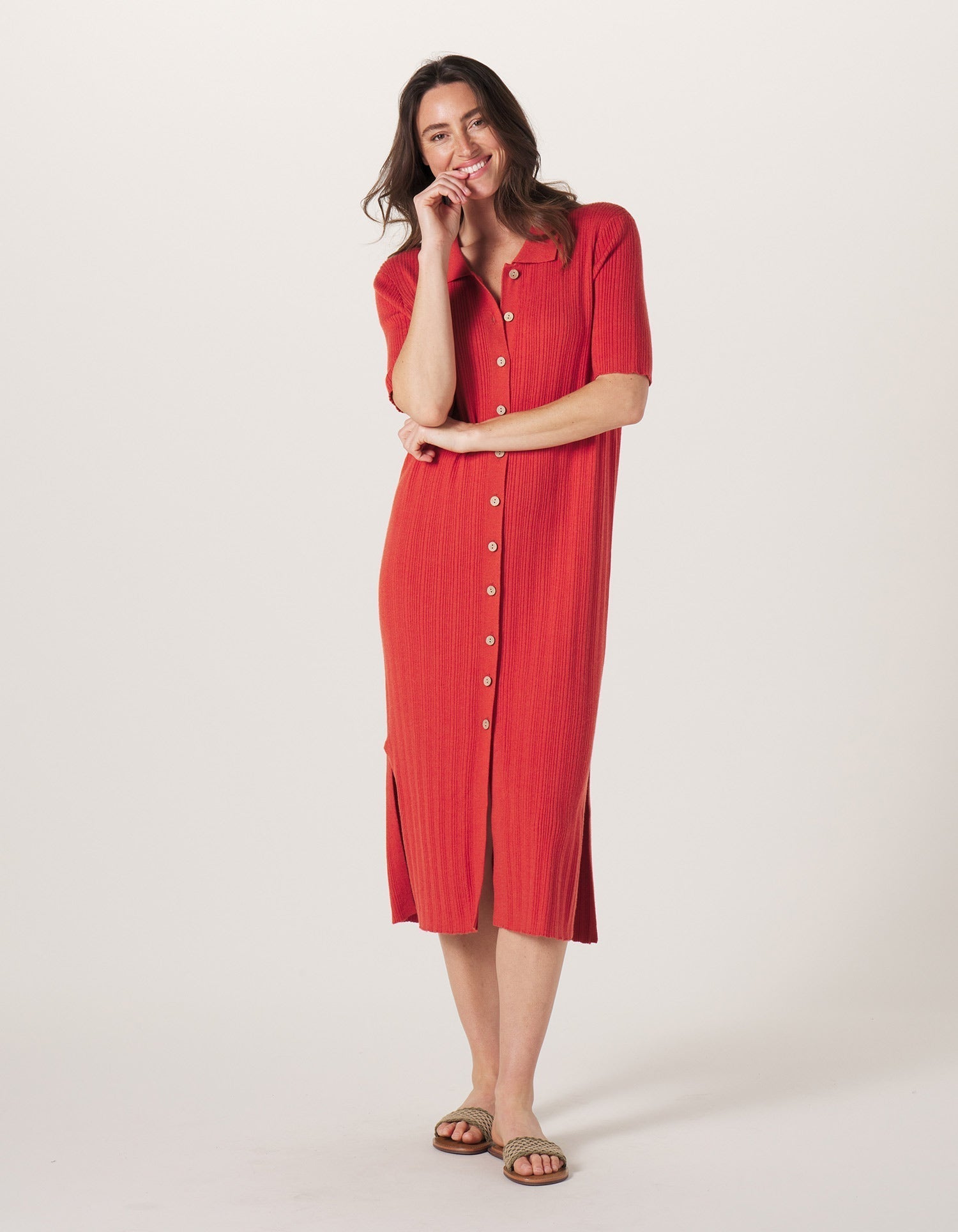 Our modern spin on a classic look, the Jolene is made with a soft, breathable knit that's perfect for those hot summer days. Dress it up with a wedge sandal, or road trip in it with your favorite pair of leather boots. Side slits and a full button front allow you to show as much or as little skin as you're comfortable with.