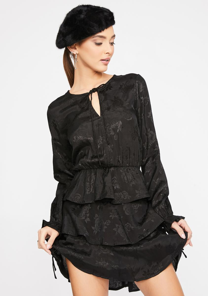 cuz you always stay so charming! Put a smile on their face in this tiered ruffle mini dress with adjustable self-ties and a floral print all ova.