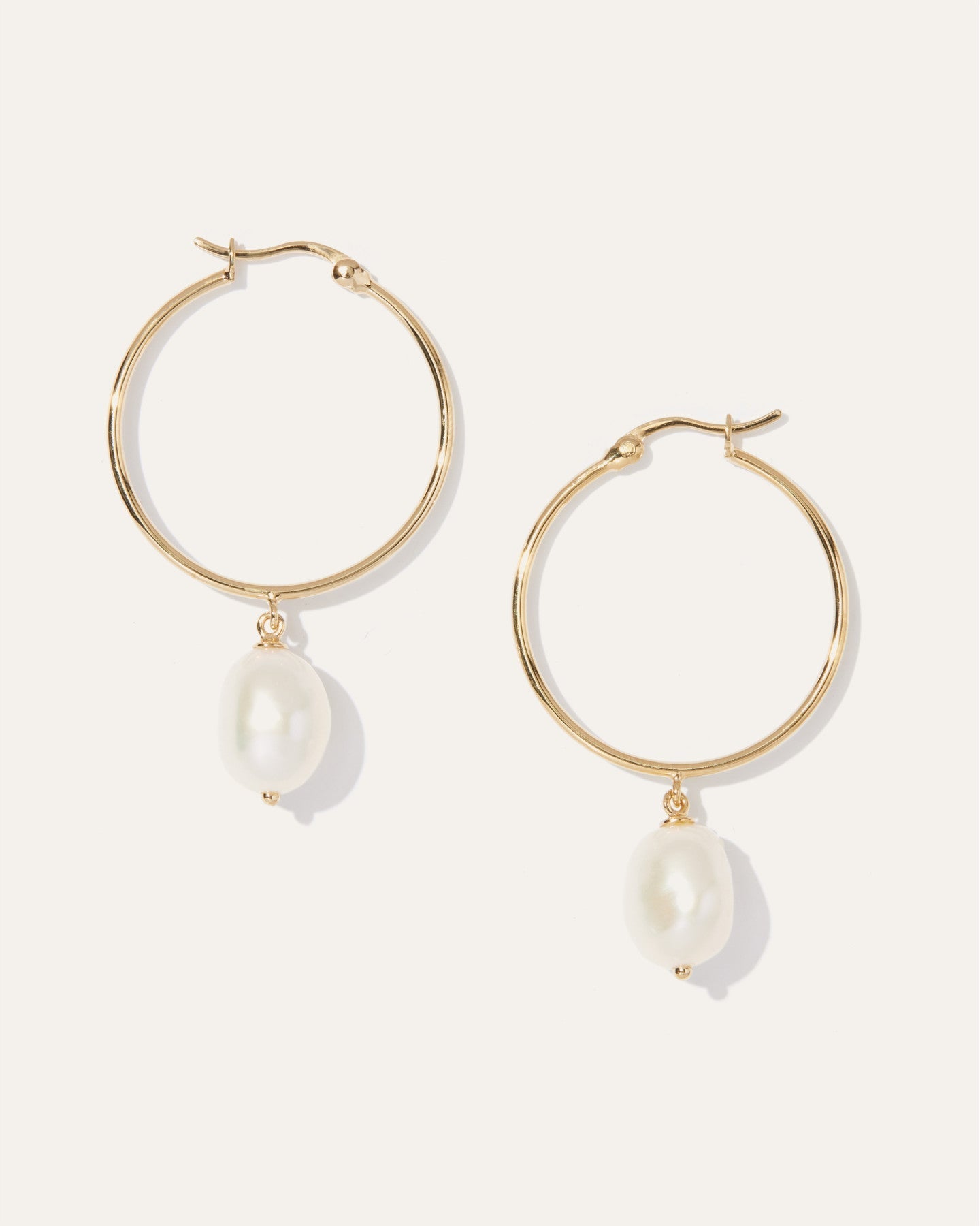 A little louder than our standard Freshwater Cultured Pearl Hoops, these earrings draw your eye with their iridescence. Crafted with gold vermeil, which is sterling silver layered with a thick layer of 18k gold and is much higher quality than standard gold plating.