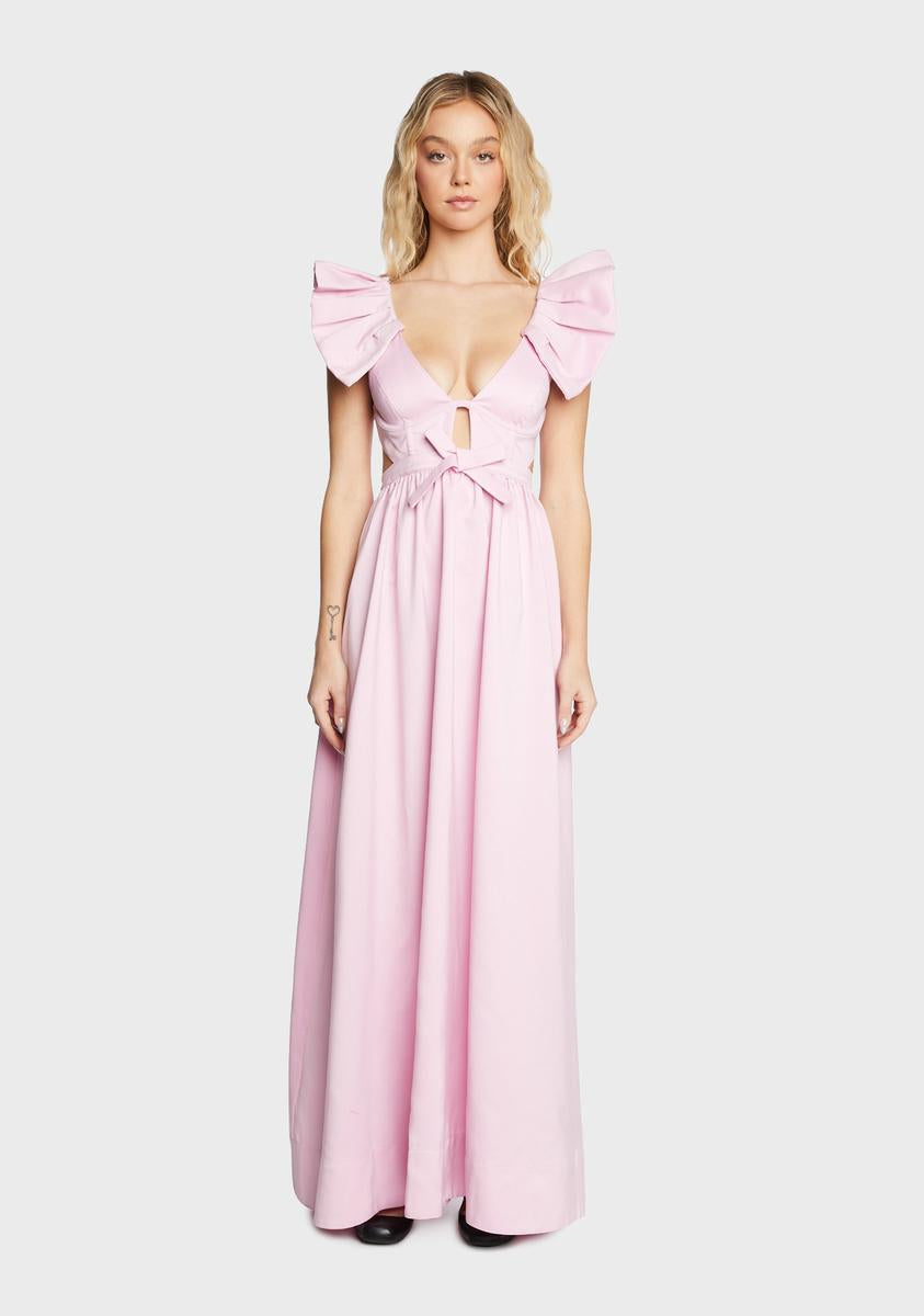 cuz you'd never miss a chance to dress up! This maxi dress has a matte satin construction, pleated ruffle shoulder straps, a plunging cutout neckline, a gathered skirt, a zip closure, and adjustable back ties.