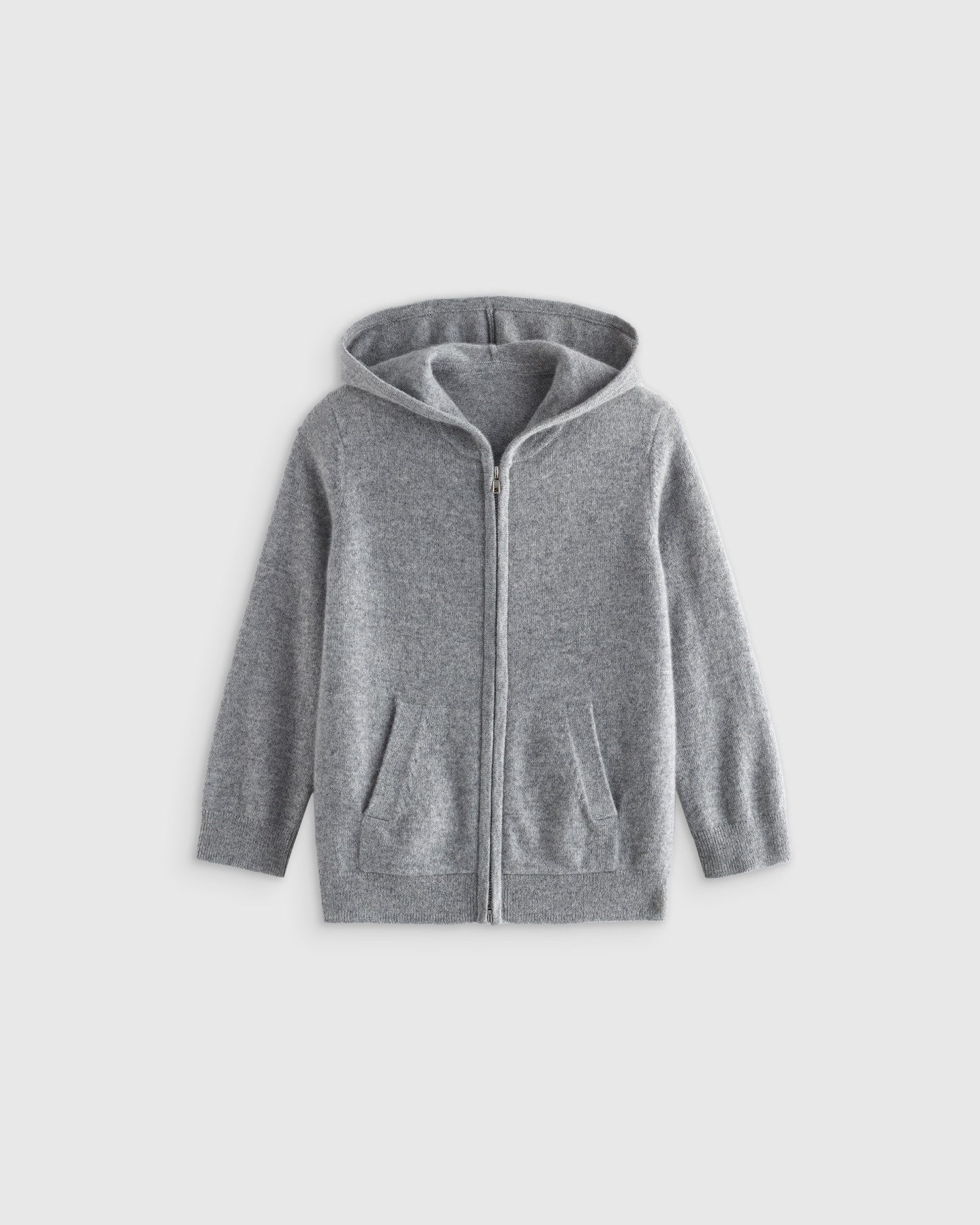 This full-zip hoodie is the perfect everyday layering piece. For a mini and me matching moment, pair with our women's or men's cashmere full-zip hoodie. Our all-natural cashmere has a cloud-like softness, meaning it won’t irritate your little one’s delicate skin. It is lightweight and breathable, so it will keep them warm without the risk of overheating. Due to its natural antibacterial qualities, it requires less frequent washing, and no dry cleaning is required.