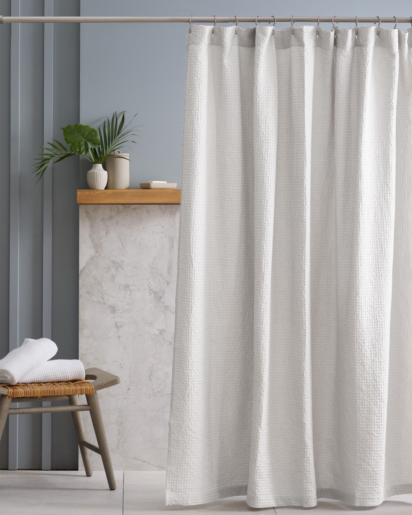 Our beautifully textured waffle shower curtain is woven from super soft 100% organic cotton and features a clean honeycomb design. It offers year-round luxury and a fresh update to your bathroom.