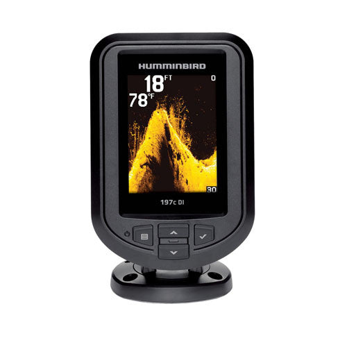 The PiranhaMAX 197c DI features a 256 color 320V X 240H, 3.5" display with 1600 watts PTP power output with Down Imaging and Dual Frequency sonar. The design also allows drop-in replacement for competitive in-dash models.