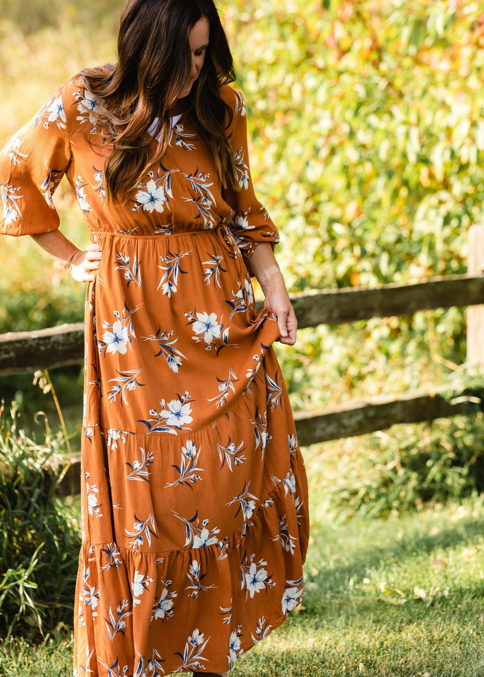 - Style:?Elastic cuffs, ruffle hem, tie waist, wrap front bodice