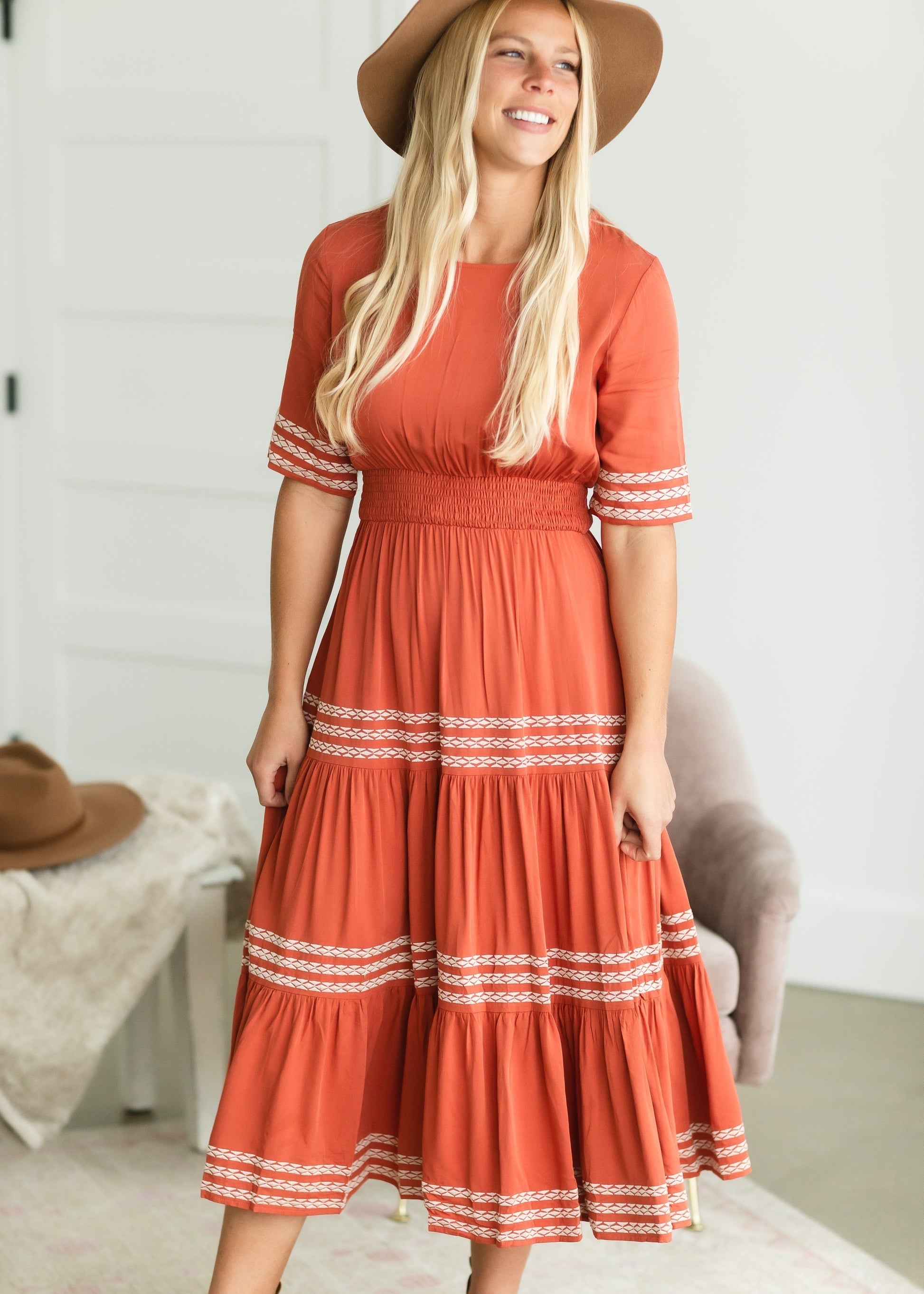 Rust Smocked Tiered Midi Dress - FINAL SALE