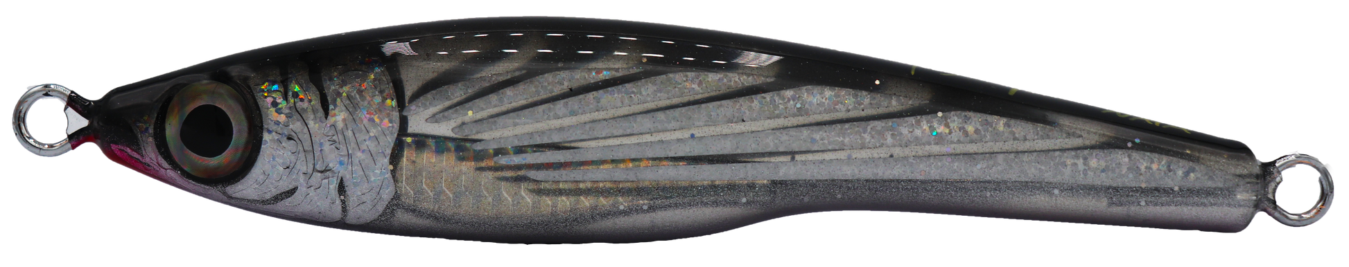 Naia is the latest creation offered by StrategicAngler for 2020. She transcends the traditional design of a stickbait and a fast sinking jig. I refer to Naia as a “she” because of her fluid lines and seductive appearance. The omission of the belly loop creates a rhythmic side to side cadence as she free falls, while the tail hook configuration can be customized to suit your fishing style. Naia works well with large single hooks or trebles of various sizes. Twitches, “walk the dogs”, sweeps and a sinking flutter all successfully embody her fluid style.