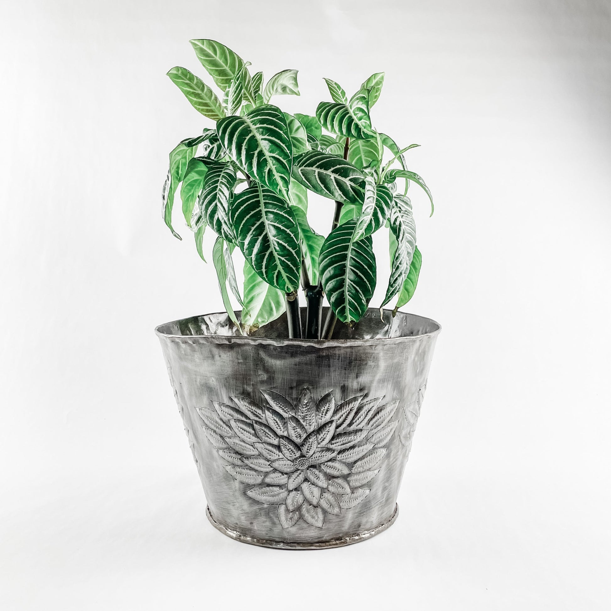 Show off a houseplant in charming style with this handcrafted floral planter. Great for displaying in your living room or entryway, or your outdoor patio or garden, it will complement a variety of real or faux plants to showcase your greenery and add welcoming vibes to your home. Each planter is handmade by skilled artisans at Anchored in Hope in Haiti.