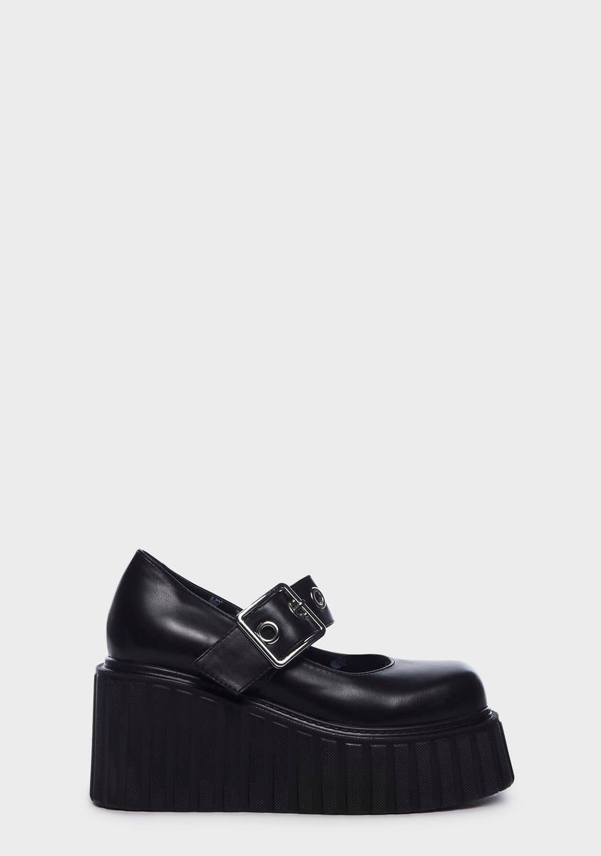 cuz you're not gonna give up. These creepers have a vegan leather construction, a round toe design, and adjustable buckle closures.