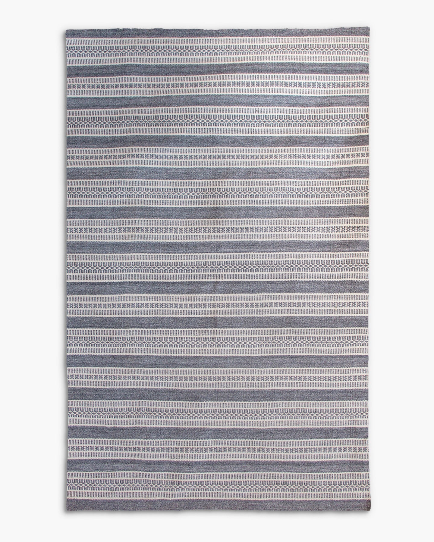 Our rugs are expertly handwoven by artisans in India, making each rug inherently unique. The Tristan Rug, hand-woven into an eye-catching grey stripe pattern, is made from recycled plastic bottles, meaning it’s durable and stain-resistant. Workable in both indoor and outdoor spaces, this is where form meets function.