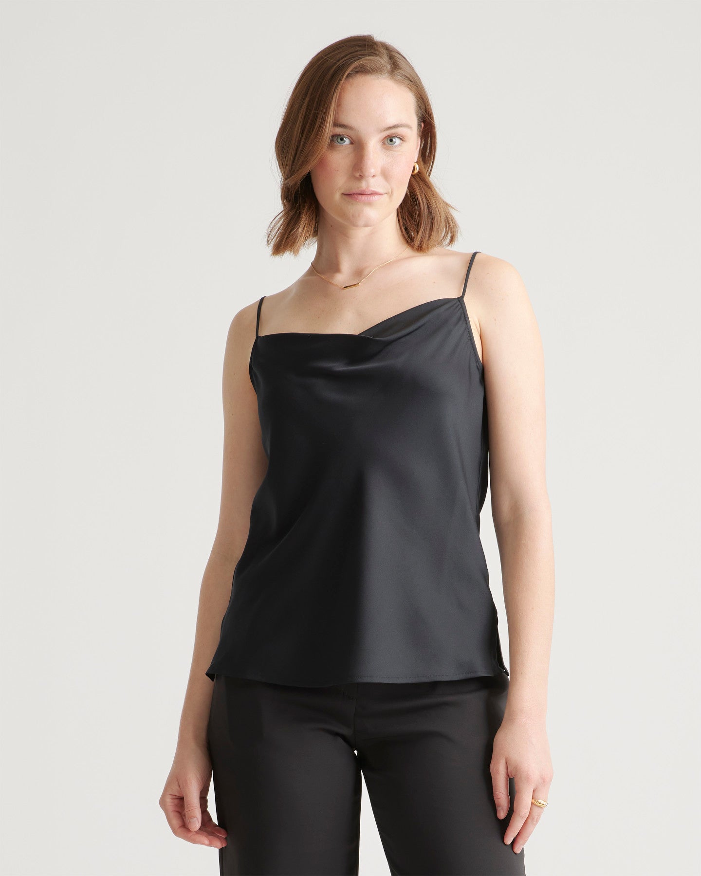 The neckline on this cami deserves a chef’s kiss. Softly draped to highlight your shape, it’s the ideal layer under a cardigan or blazer, or wear it on its own—a top this good deserves the spotlight. Adjustable straps ensure the right fit, and side slits let it sit perfectly on your hips. Made of our bestselling premium mulberry silk with a hint of stretch, famously low-maintenance and washable. Plus, silk fiber contains 18 kinds of amino acids that make it amazing for skin nourishment, hypo-allergenic, and naturally thermoregulating to help maintain body temperature.