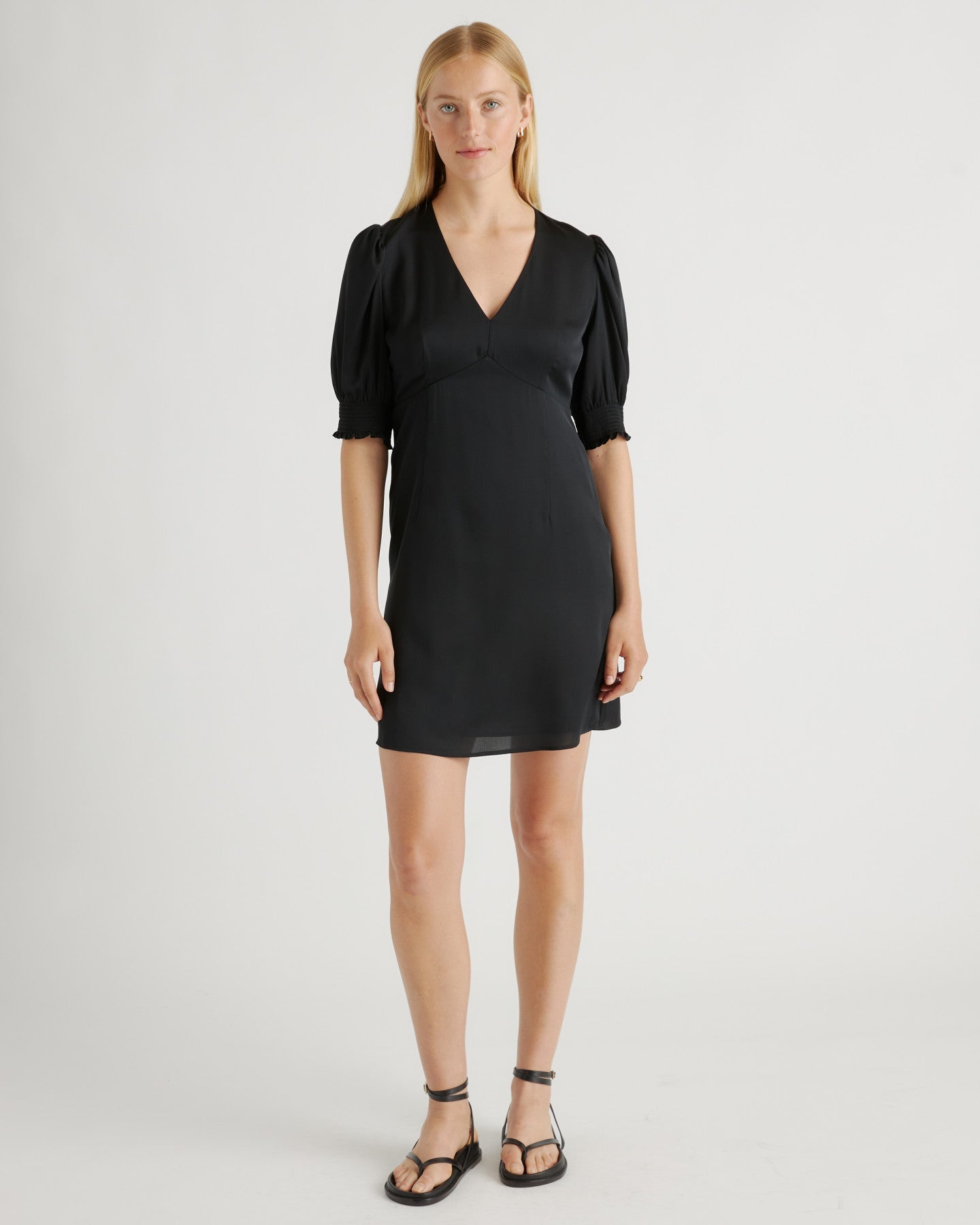 Washable Stretch Silk Puff Sleeve Mini Dress