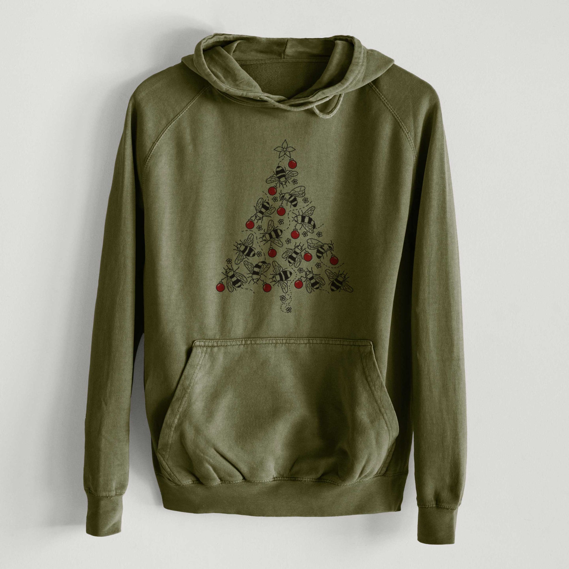 Christmas Tree of Bees - Mid-Weight Unisex Vintage 100% Cotton Hoodie